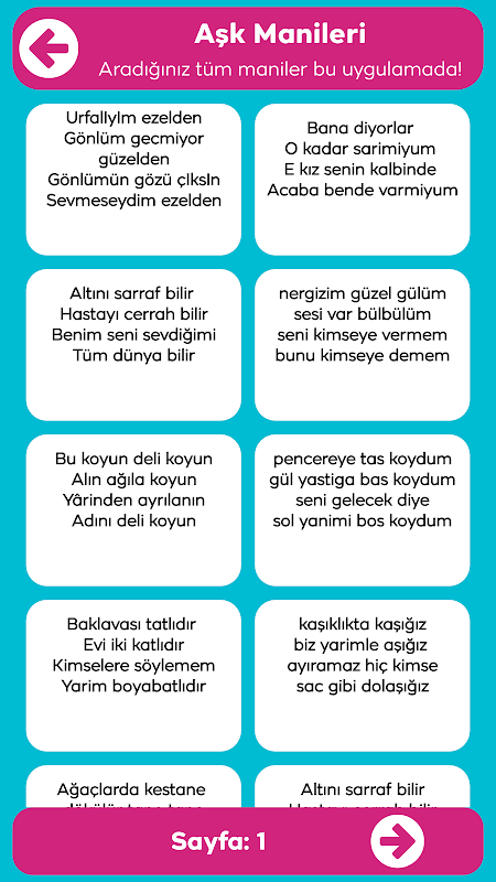 কোন বিষয় সীমাবদ্ধতা নেই. এটি প্রেম, প্রকৃতি, প্রশংসা, ব্যঙ্গ, শিশুদের ভালবাসা, বিচ্ছেদ, আকাঙ্ক্ষা এবং ভালবাসার বিষয়গুলি নিয়ে কাজ করে। তাদের বিষয় এবং ব্যবহারের ক্ষেত্র অনুসারে ম্যানিয়ার ধরনগুলি নিম্নরূপ: উদ্দেশ্য, ভাগ্য বলার (ব্যাখ্যা) ম্যানিয়া, লাভ ম্যানিয়া, ব্যবসায়িক ম্যানিয়া, গার্ড এবং ড্রামার ম্যানিয়া, লেটার ম্যানিয়া, বিকারিং ম্যানিয়া, গেম ম্যানিয়া…