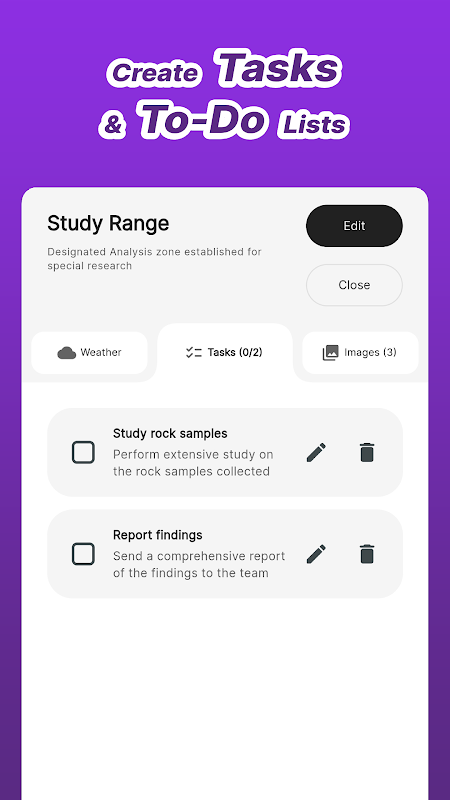 - ফিল্ড রিসার্চ: পরিবেশগত অঞ্চল, বন্যপ্রাণীর আবাসস্থল রেকর্ড করুন এবং ম্যাপ করা ক্ষেত্রে জিওট্যাগ করা গবেষণা ডেটা সংগ্রহ করুন।