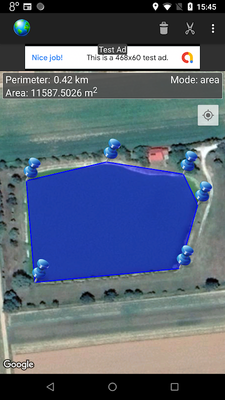 This application allows you to measure the length of a path on the map. You can also measure the size of an area on the map.