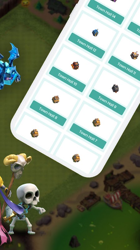 - Awesome base maps from town hall 4 to town hall 14: war, farming, trophy, etc.