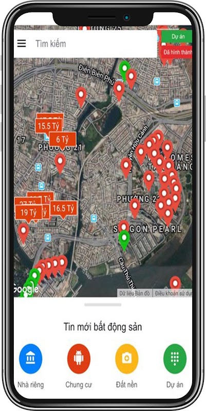- Tìm kiếm dự án, nhà đất theo bản đồ