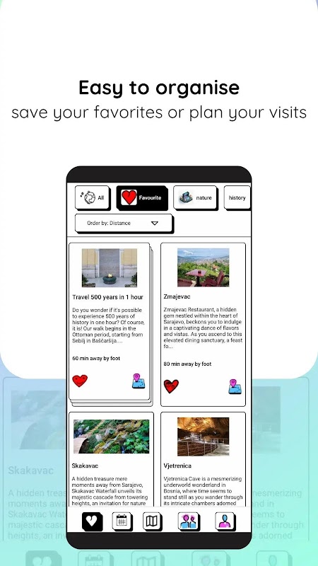- লুকানো রত্নগুলি খুঁজুন এবং স্থানীয়দের মতো সারাজেভো অঞ্চলগুলি অন্বেষণ করুন; আপনার প্রিয় জায়গা সংরক্ষণ করুন