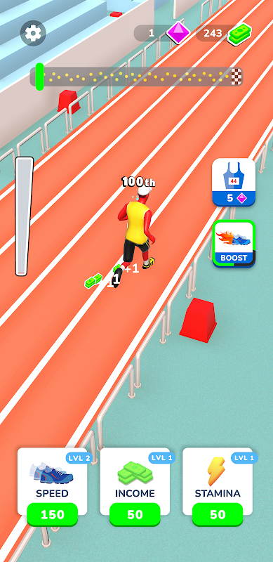 প্রতিটি ধাপ থেকে অর্থ উপার্জন করুন, দৌড়ানোর সময় আপনার গতি, স্ট্যামিনা এবং আয় আপগ্রেড করুন, এটি দৌড়ানোর সময়। দ্রুত দৌড়াতে এবং আপনার প্রতিযোগীদের থেকে এগিয়ে যেতে আলতো চাপুন। অস্থায়ীভাবে জ্বলন্ত দ্রুত গতি পেতে আপনার রানারকে বুস্ট করুন। আপনি কি 100 তম স্থান থেকে 1 ম স্থান পর্যন্ত যেতে এবং ম্যারাথন চ্যাম্পিয়ন হওয়ার জন্য যথেষ্ট দক্ষ? বাটারি মসৃণ মেকানিক্সের সাথে গেমটি উপভোগ করুন যা আপনাকে নিমজ্জিত গেমের অভিজ্ঞতা প্রদান করবে