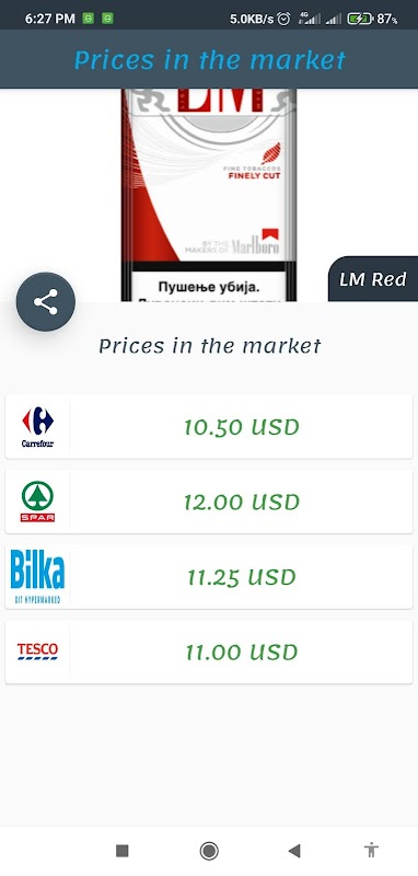 কোনও নির্দিষ্ট দোকানে পণ্যটির দাম প্রদর্শন করে