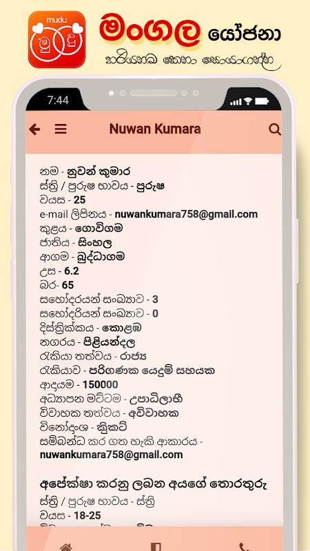 මෙම "මුදු මංගල සේවය" මගින් ඔබගේ විවිාහහ හිනයක්ම නොකර ඔබට ගැලපෙනම සහකාරිය, සබප සුවෙන් මෙම යෙදුම තුළින් සොයා දීම෴ා දීමපා යෙදුම