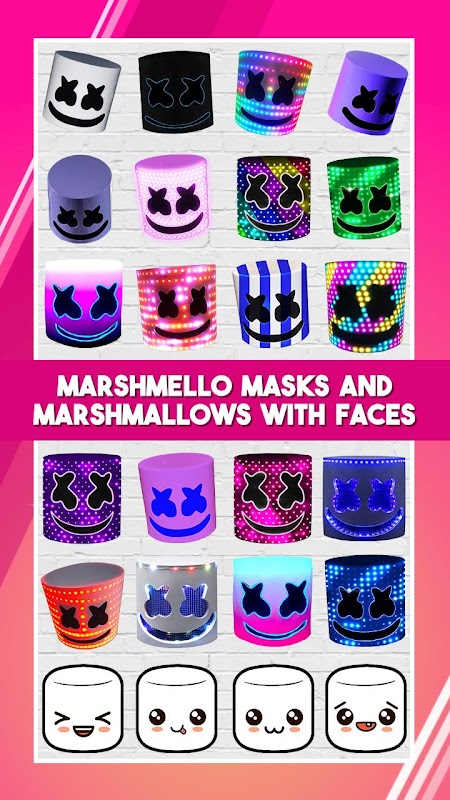 Everyone want's to know the secret who is the person hiding behind the marshmello face mask. And thanks to this marshmello photo edit, you can be the one that wears the world's most famous disguise. All of the stickers for pictures found inside this marshmello photo app have a dj marshmello theme. Browse through them and find the perfect marshmello face filter to hide your identity and share your marshmello pics directly to social media to show that you are the biggest fan of marshmello music. Whether you plan to use the marshmello face camera just on yourself, or disguise everyone in your photo, you can do it with ease. Pick out a photo stickers and rotate it and adjust its size using your fingers to zoom in or out. If marshmello songs make you feel happy imagine what looking like your favorite dj will do, so download this marshmello mask editor and have fun modifying your images.