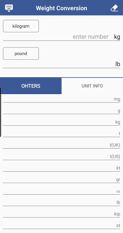 직관적인 UI로 여러가지 단위의 무게를 상호 변환할 수 있는 앱입니다.