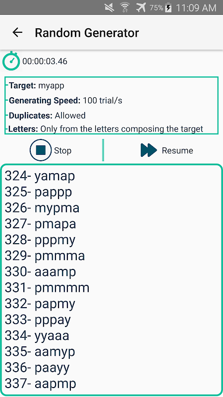 আপনি অ্যাপ্লিকেশনটি এলোমেলোভাবে আপনার নাম রচনা করতে কত বার লাগবে তা এখন পরীক্ষা করতে পারেন :)