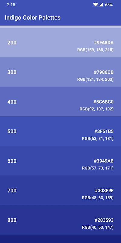 Material Color Palettes is a collection of 250+ colors.