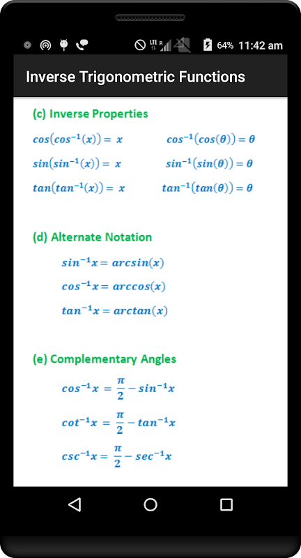 Math Formulas Pro হল একটি অনন্য এবং ব্যাপক অ্যাপ যা বিশেষ করে কলেজ গ্রেড/হায়ার গ্রেডের ছাত্রদের জন্য ওয়ান-স্টপ সমাধান হিসেবে ডিজাইন করা হয়েছে। এটি বীজগণিত, জ্যামিতি, ত্রিকোণমিতি এবং ক্যালকুলাসের সমস্ত গুরুত্বপূর্ণ সূত্র/বিষয় তালিকাভুক্ত করে। এই সূত্র/ধারণাগুলির নিয়মিত পর্যালোচনা অবশ্যই আপনার গ্রেড উন্নত করতে সাহায্য করবে।