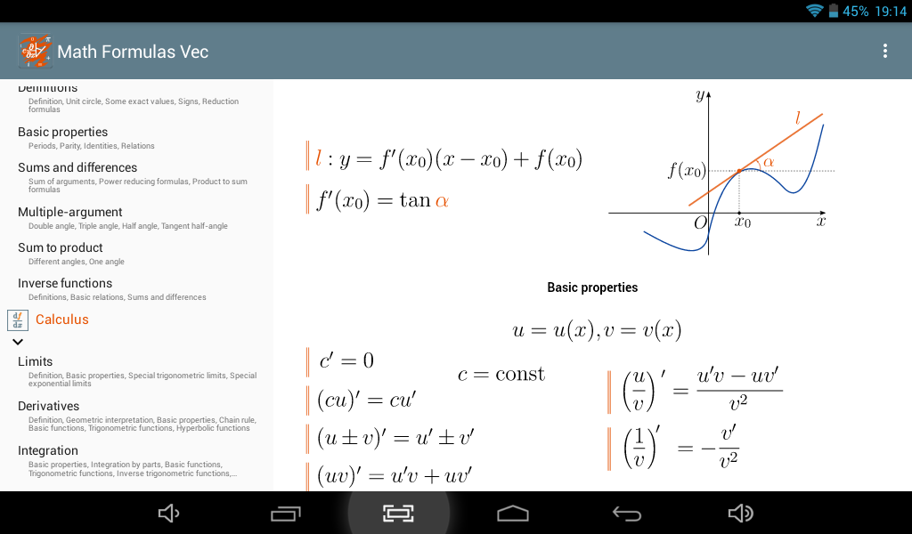 This app contains basic mathematical formulas. We use vector graphics (SVG) for our equations sheets (LaTeX-like style). Such images can be scaled without losing quality (no pixelation).