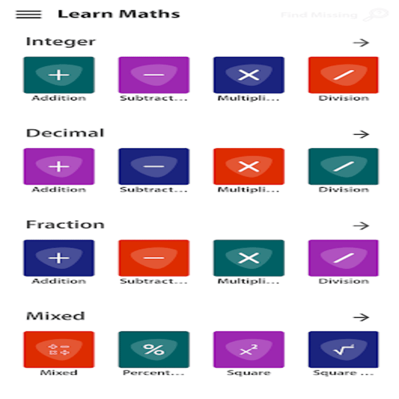 ম্যাথ লার্নিং হল একটি বিনামূল্যের শেখার খেলা যারা গণনার গতি বাড়ানোর জন্য আকর্ষণীয় গাণিতিক কৌশল শিখতে চান তাদের জন্য ডিজাইন করা হয়েছে। এটি এলোমেলো গণিত ক্রিয়াকলাপগুলির অনুশীলন করার জন্য একটি দৈনিক পরীক্ষাও সরবরাহ করে। মুদ্রণযোগ্য গণিত কুইজগুলি বাচ্চাদের জন্য গণিতের কার্যপত্রকগুলিতে এবং মৌলিক গণিত ধারণাগুলিকে শক্তিশালী করতে এবং মৌলিক গণিতের তথ্যগুলির উপর নির্ভুলতার সাথে গতি উন্নত করতে দুর্দান্ত অনুশীলন।