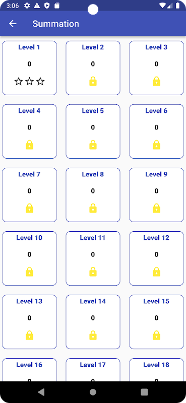 একটি শেখার অ্যাপ্লিকেশন, বিভিন্ন স্তরে বিভক্ত, উপলব্ধ বৈশিষ্ট্য যেমন