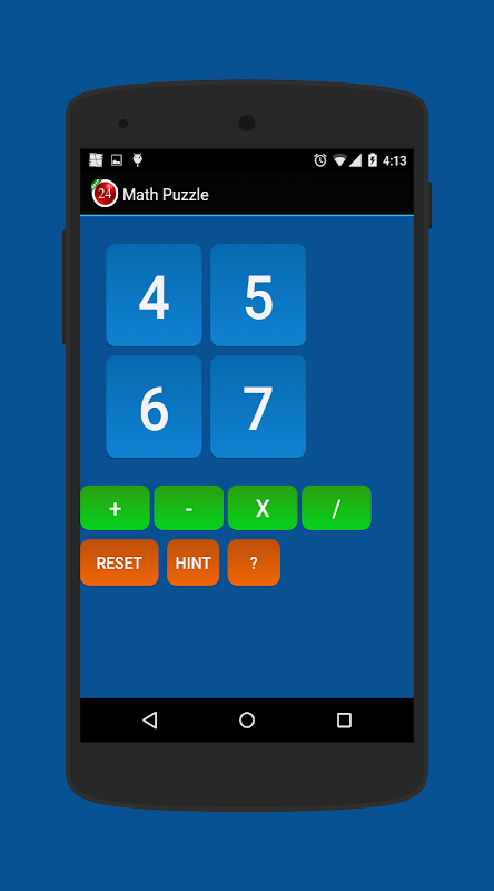 The math puzzle is called 24 where the objective is to get a result of 24 from 4 numbers 1-9 using operator +, -, x, /.
