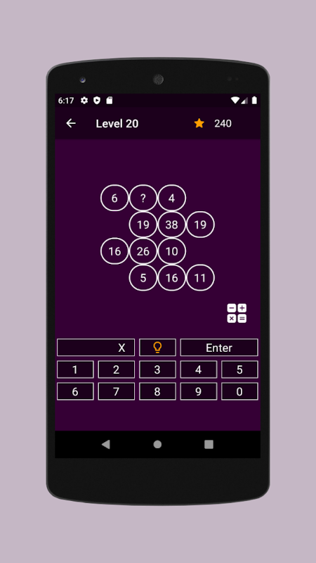 গণিত ধাঁধার প্রতিটি সমাধান করা স্তরের জন্য আপনি 50 পয়েন্ট পাবেন। যদি আপনি ভুল নম্বর ইনপুট করেন তবে আপনি 10 পয়েন্ট হারাবেন। পাঁচটি ভুল প্রচেষ্টার পর স্তরের জন্য পয়েন্ট শূন্যের সমান হবে।