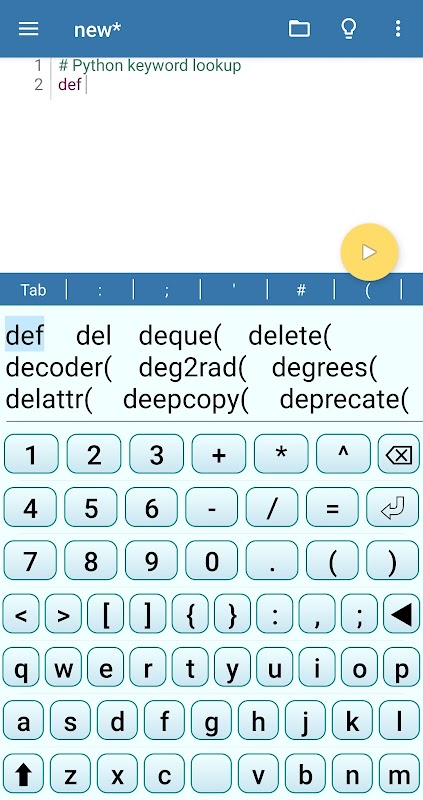 এই কীবোর্ডটি একটি পৃষ্ঠার মধ্যে বর্ণমালা, সংখ্যা এবং চিহ্ন একসাথে দেখাতে পারে এবং কোডিং বা প্রোগ্রামিং কী এন্ট্রিকে সহজ করে তোলে। সংরক্ষিত শব্দ এবং সাধারণ পদ্ধতি স্বয়ংক্রিয় অনুসন্ধান টাইপিং প্রচেষ্টা সংরক্ষণ করে। জাভাস্ক্রিপ (130 শব্দ), জাভা (~ 500 শব্দ), পাইথন (800 শব্দ) এবং ALC (অ্যাডভান্সড লার্নিং ক্যালকুলেটর, 80 শব্দ) সংরক্ষিত শব্দ এবং সাধারণ পদ্ধতিগুলি ডিফল্ট অভিধানে অন্তর্ভুক্ত করা হয়েছে। ডিফল্ট অভিধানে পাওয়া যে কোনো ব্যবহারকারীর টাইপ করা শব্দ কাস্টম অভিধানে যোগ করা হয় এবং শুধুমাত্র 1টি অক্ষর দিয়ে অনুসন্ধান করা যায়। এই অ্যাপের মধ্যে সাধারণ কীবোর্ড অটো ফিল বা বানান সংশোধনের জন্য প্রায় 50,000 ইংরেজি শব্দ এবং কোরিয়ান শব্দ অন্তর্ভুক্ত করা হয়েছে। কীবোর্ডের আকার সহ বিভিন্ন রঙ এবং আকৃতি অপ্টিমাইজেশন আরেকটি চমৎকার বৈশিষ্ট্য। দ্রষ্টব্য: কীবোর্ড স্যুইচ করা হলে ব্যবহারকারীর টাইপ করা শব্দগুলি হারিয়ে যাবে।