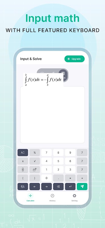 - গণিত কীবোর্ড: একটি গাণিতিক কীবোর্ড ব্যবহার করে নির্ভুলতার সাথে সমীকরণগুলি ইনপুট করুন।