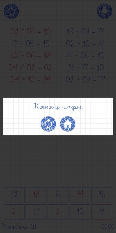 গেমের লক্ষ্য হ'ল একটি নির্দিষ্ট সময়ে বিয়োগ, গুণ, বিভাগ এবং সংযোজনের উদাহরণ সমাধান করা।