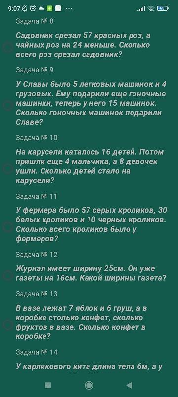 1, 2, 3, 4 এবং 5 গ্রেডের জন্য গাণিতিক উদাহরণ, অ্যালগরিদম এবং সমস্যাগুলির একটি সংগ্রহ, সেইসাথে গুণের সারণী নির্মাণ।