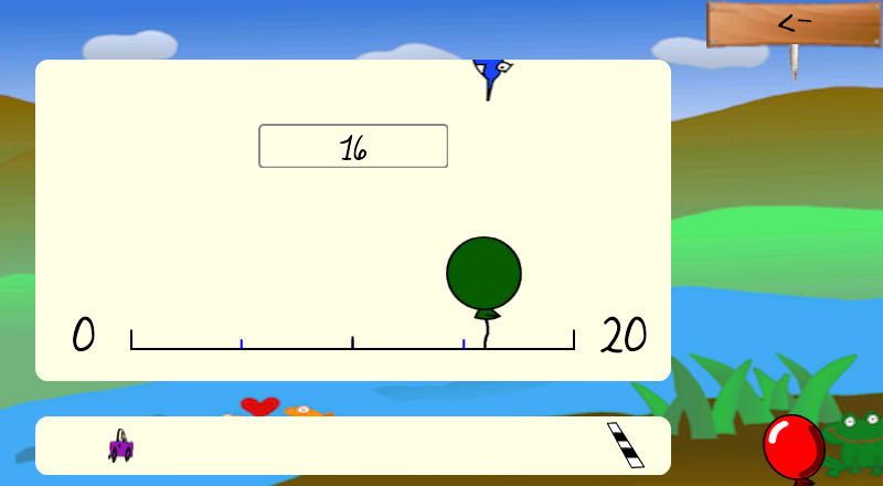 Level 1: Starts with the understanding of the numbers from 0 to 12. The games are "memory" where the numbers are visible, counting fishes and a number line.