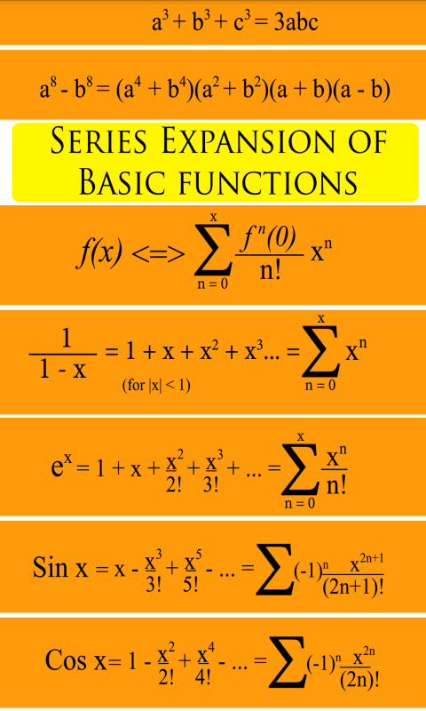 MathKit is math formula reference application which contains hundreds of formulas from different areas of mathematics. The application consists of formulas from: