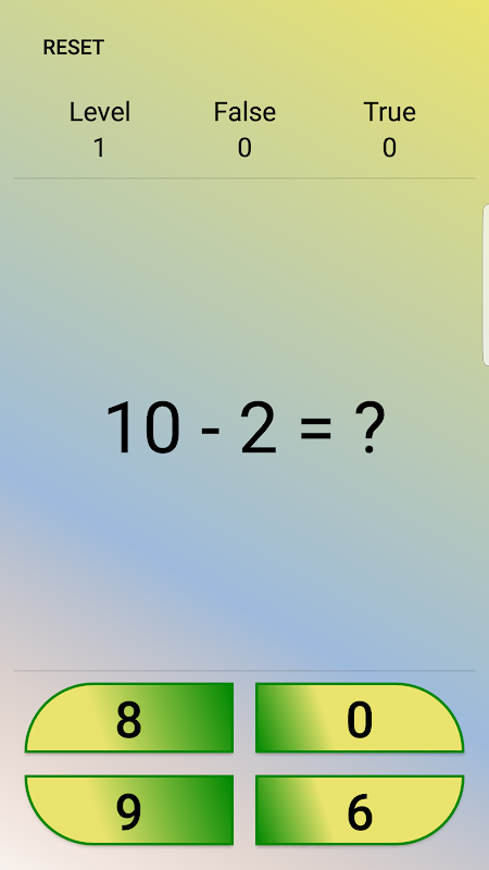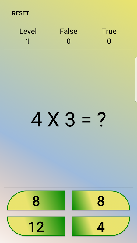 এই গেমটিতে চারটি হিসাব রয়েছে (গুণ, বিভাগ, সংযোজন এবং বিয়োগ) এবং এতে অনেকগুলি স্তর রয়েছে