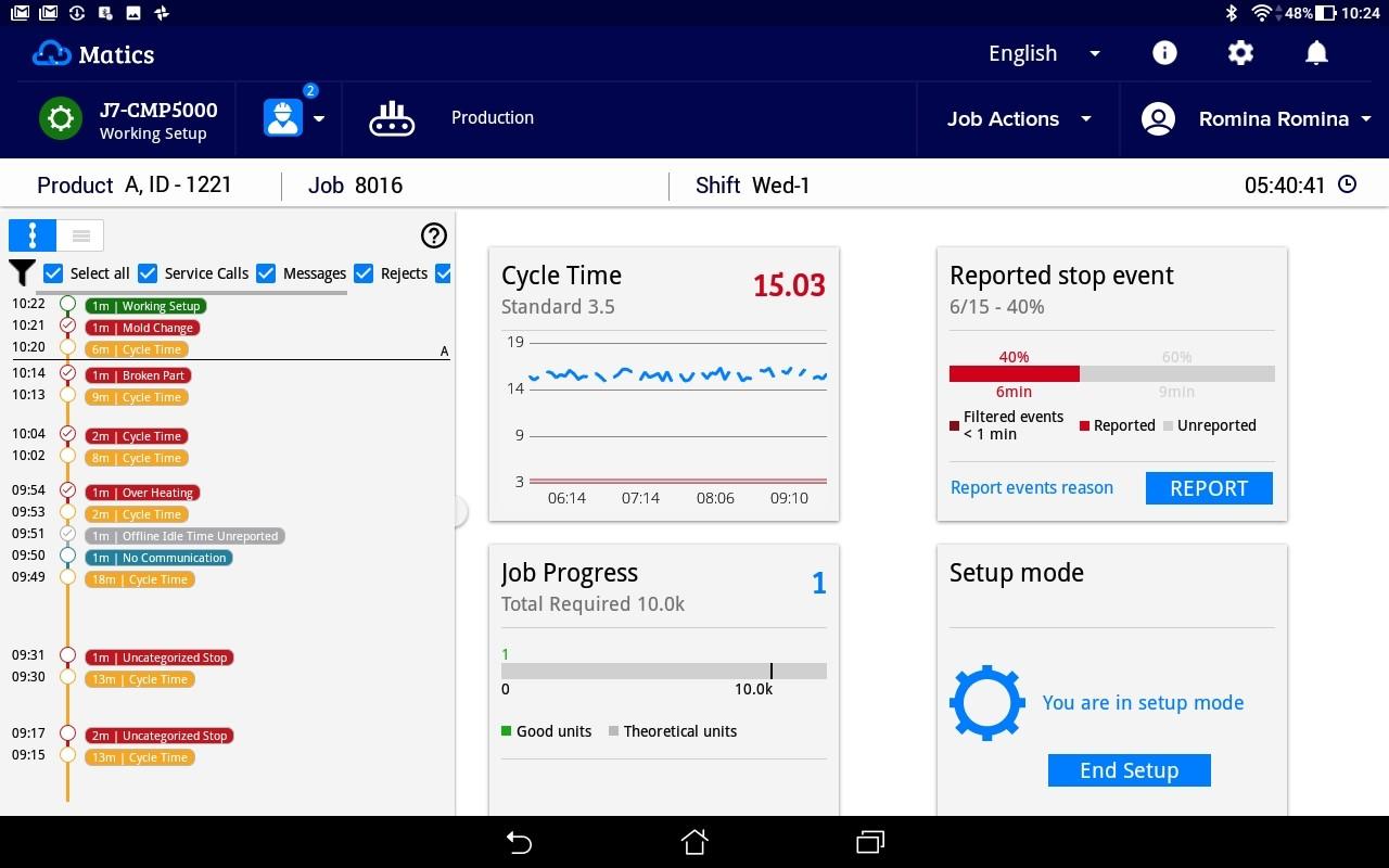 ম্যাটিক্স, উদ্ভাবনী ক্লাউড ম্যানুফ্যাকচারিং এক্সিকিউশন সিস্টেমের সাথে পেপারলেস উত্পাদন ফ্লোর বিপ্লবে যোগদান করুন। অপারেটরদের অপারেশন অপ্টিমাইজ করতে, লোকসান ও বর্জ্য হ্রাস করতে, এবং থ্রুপুট বাড়ানোর জন্য ম্যাটিক্স অপারেটর অ্যাপ্লিকেশনটি 'ব্যক্তিগত সহায়ক' হিসাবে কাজ করার জন্য ডিজাইন করা হয়েছে।