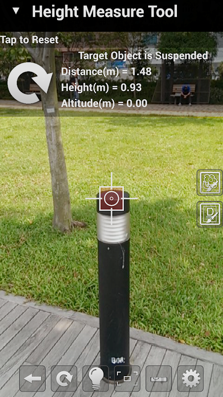 Measure Tools can calculate the Distance, Height, Width, Area and Altitude of far away object with the value of gyroscope and camera.