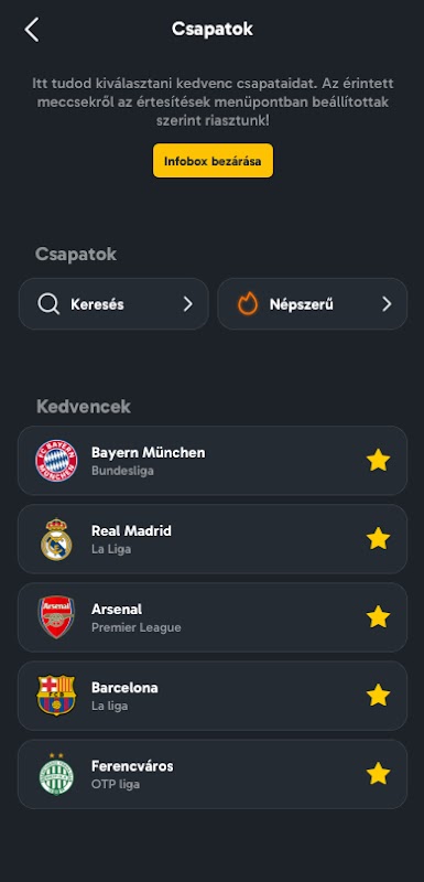 Állítsd be kedvenc bajnokságaid, csapataid, vagy akár csatornáid, és jelenítsd meg kizárólag azokat a mérkőzéseket, amik számodra fontosak!