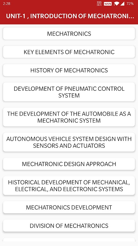অ্যাপটি মেকাট্রনিক্সের একটি সম্পূর্ণ বিনামূল্যের হ্যান্ডবুক যা বিস্তারিত নোট, ডায়াগ্রাম, সমীকরণ, সূত্র এবং কোর্সের উপাদান সহ গুরুত্বপূর্ণ সমস্ত বিষয় কভার করে।