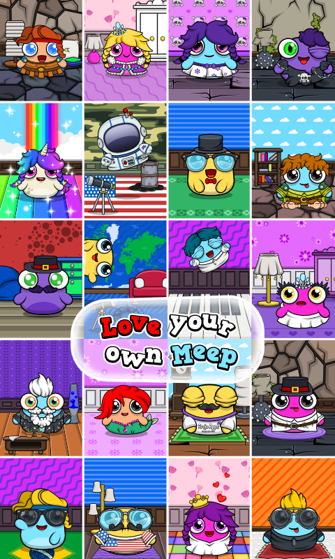 Meep - Virtual Pet Game is packed with tons of fun features and mini-games that's never been seen in a virtual pet game before! Meep is also a sibling of Moy!