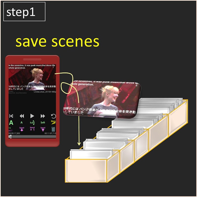 এই পরবর্তী প্রজন্মের শেখার প্রযুক্তি, জাপানে তৈরি, আপনাকে বিদেশী নাটক সিরিজ, সিনেমা দেখে বিদেশী ভাষা শেখার একটি দুর্দান্ত উপায় দেয়। যখনই আপনি একটি ভিডিও বা একটি অডিও ফাইল চালান, আপনি একটি দৃশ্যের একটি ফ্ল্যাশ কার্ড তৈরি করতে পারেন যা আপনি শুধুমাত্র এক-টাচ অপারেশনের মাধ্যমে পর্যালোচনা করতে চান৷ (ফ্ল্যাশ কার্ডগুলি একটি সম্পূর্ণ অংশ যা আপনি বারবার অনুশীলনের মাধ্যমে মুখস্থ করার জন্য পর্যালোচনা করতে চান৷) ফ্ল্যাশ কার্ড, প্রতিটি কার্ডে একটি ভিডিও/অডিও রয়েছে, যা আপনাকে দৃশ্যগুলিকে দক্ষতার সাথে এবং কার্যকরভাবে মুখস্থ করতে সহায়তা করে৷