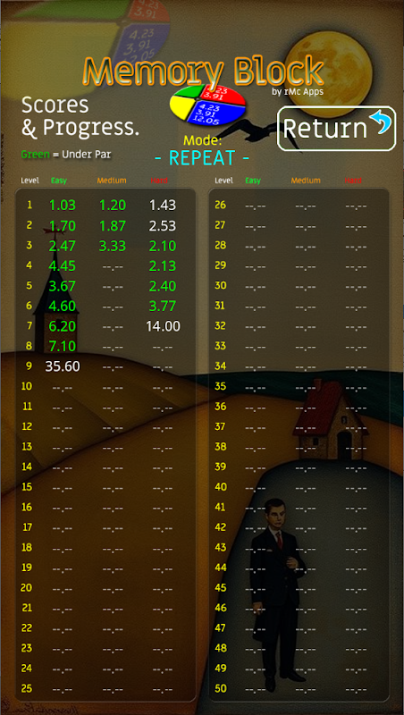 প্রতিটি পৃথক গেমের জন্য আপনার সমস্ত সময়, সেরা সময় এবং পার্স দেখুন এবং উন্নতি করার চেষ্টা করুন।