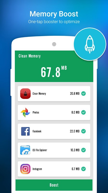 Memory Cleaner = Memory booster + Battery saver + Ram booster + Master clean