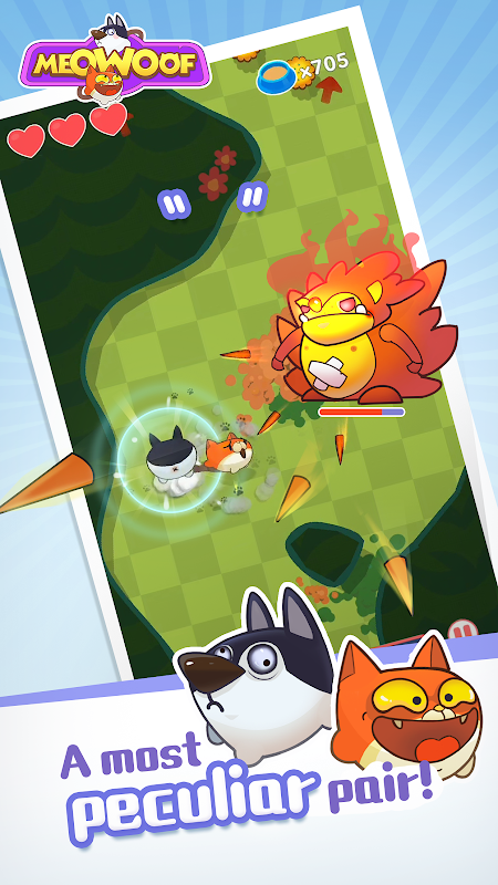 Meowoof একটি একক বোতাম সঙ্গে একটি quirky 2D কর্ম খেলা।