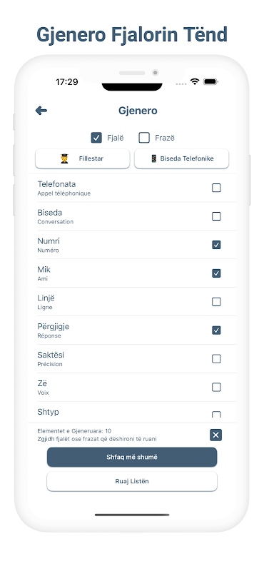 অ্যাপলিকাওনি ynë është krijuar posaçërisht për folësit shqip, duke ofruar përkthime, shpjegime dhe shembuj në shqip për t'ju ndihmuar të kuptoni lehtësisht কনসেপ্ট ই freng. Ajo lidh hendekun midis dyjuhëve, duke siguruar njërvojë mësimi pa সমস্যা।