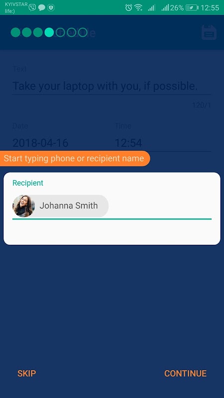 The program is designed for scheduling SMS sending at expected time. The application silently assists you and won't bother when you have limited time. On message creation you set date and time when the system has to send it. The scheduler can be useful either you're going to deliver birthday greetings in several days or you intend to remind some of your colleagues to do important things tomorrow morning.