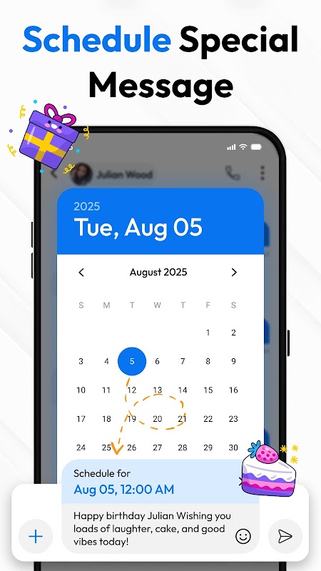 ✔ সময়সূচী বার্তা - পরে পাঠানোর জন্য অনুস্মারক বা শুভেচ্ছা সেট করুন। জন্মদিন, কাজের আপডেট বা ব্যক্তিগত নোটের জন্য পারফেক্ট।