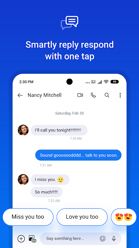 বার্তা : টেক্সট মেসেজ, এসএমএস অ্যাপ ব্যবহারকারীদের একটি অ্যাপ থেকে তাদের সমস্ত মেসেজিং এবং সোশ্যাল অ্যাপে বিনামূল্যে এসএমএস, টেক্সট মেসেজ, ফটো পাঠাতে দেয়। আফটার কল ওভারভিউ ফিচার সহ আপনার সমস্ত বার্তার সাথে থাকুন এবং কল স্ক্রীন না রেখে সহজেই কল ফলো আপ করুন। এমনকি কল চলাকালীন সহজে অ্যাক্সেসের জন্য বার্তাগুলিতে কলের সময় নোটিফিকেশন এবং ক্যালেন্ডার উইজেট রয়েছে, আর কোনও তারিখ মিস করবেন না! এটি দ্রুত টেক্সটিং, সহজ চ্যাট এবং ব্যক্তিগত বার্তা প্রদান করে।