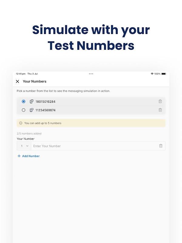 অনবোর্ডিং এবং প্রি-লঞ্চ চেকের জন্য উপযুক্ত, এটি আপনাকে লাইভ হওয়ার আগে প্রতিটি ইন্টারঅ্যাকশন যাচাই করতে সাহায্য করে। আপনি অটোমেশন পরীক্ষা করছেন, মক ক্যাম্পেইন চালাচ্ছেন বা নতুন বৈশিষ্ট্যগুলি চেষ্টা করছেন, সিমুলেটর আপনাকে আপনার সেটআপে পূর্ণ আস্থা দেয়।