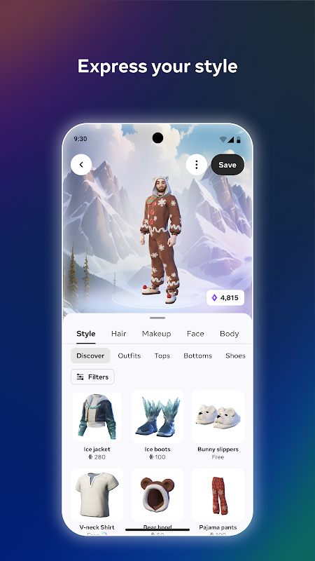 বাস্তববাদী থেকে শুরু করে কল্পনাপ্রসূত - নতুন ফিট, চুলের স্টাইল, শরীর এবং মুখের বিকল্প এবং ভঙ্গি এবং আবেগ - সব ধরণের স্টাইল দিয়ে আপনার অবতারকে অনন্য করে তুলুন।