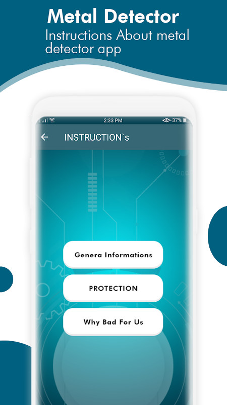 Use is very basic: dispatch this metal detection application on your cell phone and move it around. You will see that the magnetic field level appeared on screen is continually fluctuating. Analog and digital meter speak to the measurements and the numbers on top demonstrates the estimation of magnetic field level (EMF). The diagram will increment, the gadget will vibrate, and makes sounds reporting that metal is close.