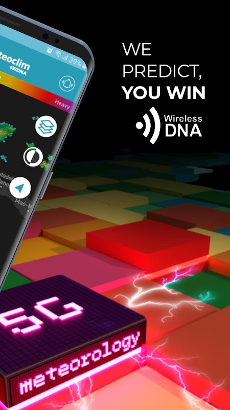 এই অ্যাপ্লিকেশনটি ওয়্যারলেস ডিএনএ দ্বারা নির্মিত বেশ কয়েকটি আর অ্যান্ড ডি প্রকল্পের ফলাফল যা 5GMeteorology প্রযুক্তির উপর ভিত্তি করে আমাদের নিজস্ব কাস্টকাস্টিং মডেলগুলি বিকাশ করতে দিয়েছে। এই জাতীয় প্রযুক্তির মধ্যে রাডার, উপগ্রহ, আবহাওয়া মডেল এবং টেলিফোন নেটওয়ার্ক থেকে নিজেই আহৃত তথ্যের মতো বিভিন্ন স্তরের তথ্য অন্তর্ভুক্ত থাকতে পারে। তথ্যের বিভিন্ন উত্স ব্যবহার করা আমাদের স্বল্প মেয়াদে রেজোলিউশন এবং নির্ভরযোগ্যতা উন্নত করতে দেয়।