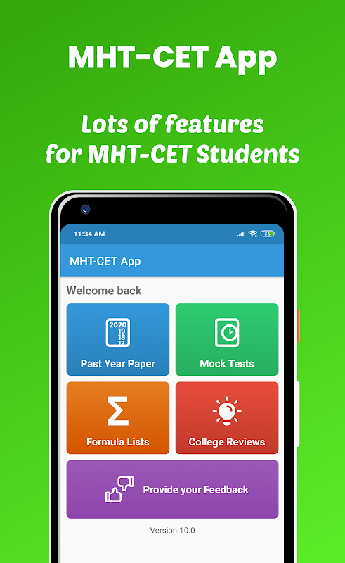 এই অ্যাপ্লিকেশনটিতে এমএইচটি-সিইটি শিক্ষার্থীদের জন্য মক টেস্টও রয়েছে। ওভারটাইম 40+ এরও বেশি মক টেস্ট যুক্ত করা হবে। বর্তমানে আমাদের 10+ মক টেস্ট রয়েছে।
