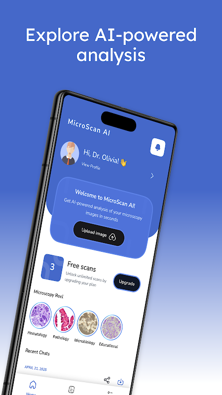মেডিকেল সহকারী এবং ল্যাব ডাক্তার। ল্যাব স্লাইড বিশ্লেষণ করুন। এআই মাইক্রোস্কোপি রিপোর্ট পান।