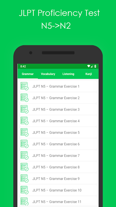 Minano Nihongo include over 48 lessons, support over 8 languages, will help you improve listening and grammar skill