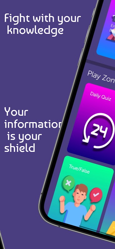 - Player Zone: Play any quiz you like which consists of ( Daily quiz - Random Quiz - True and false quiz - Self Challenge quiz)