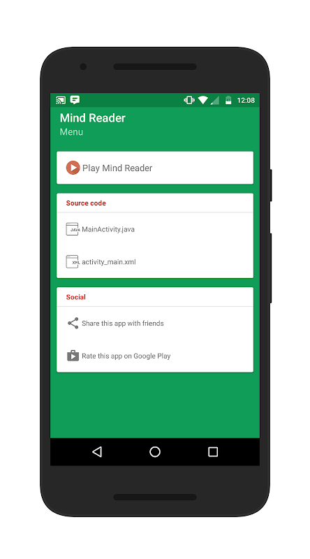 Great for beginners in Java and Android development, this simple mind reading app includes all my source code - including the layout (XML) code. Use the source code as you wish.