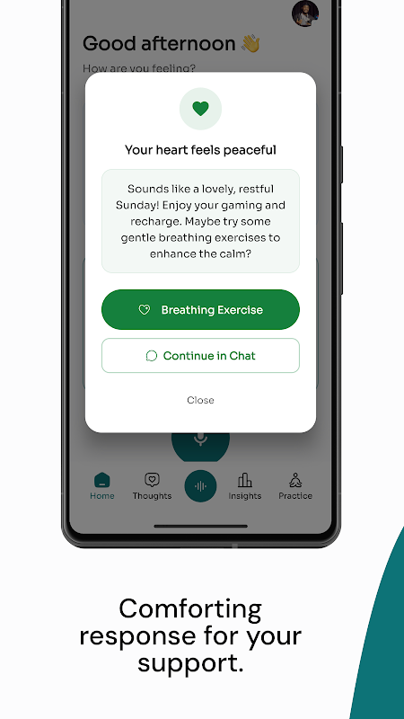 বিনামূল্যে: দৈনিক জার্নালিং, মৌলিক অন্তর্দৃষ্টি, এআই প্রতিক্রিয়া এবং মাসিক 45 মিনিটের শান্ত ভয়েস কথোপকথন অন্তর্ভুক্ত।