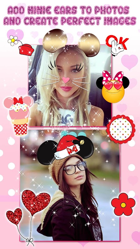 Are you a fan of kawaii stickers for pictures, cartoon photo filters, photo frames and all things cute? Do you like the latest trend that is ears photo editor and stickers on face? If you do, you should check out this pic editor with miki mouse and minie mouse stuff. You can edit pictures and make cute photography using this photo software. Download Minie Mouse Stickers 💝 Photo Editor Mini Mouse, get “face stickers for girls” and girly photo stickers, and start photoediting. Creative people who like to edit photos and use cartoon stickers will enjoy this photo maker. This is not just a sticker photo editor for girls, this is also a sticker photo editor for boys with the fun collection of cool stickers. Edit pictures using the minni mouse picture editor called “Minie Mouse Stickers” 💝 “Photo Editor Mini Mouse”. Snap a photo using the selfie camera and add miny mouse ears or cute minny pink bow to your picture. Trust us, this is the best sticker app on the market! Download this photo creator and edit photo all day!